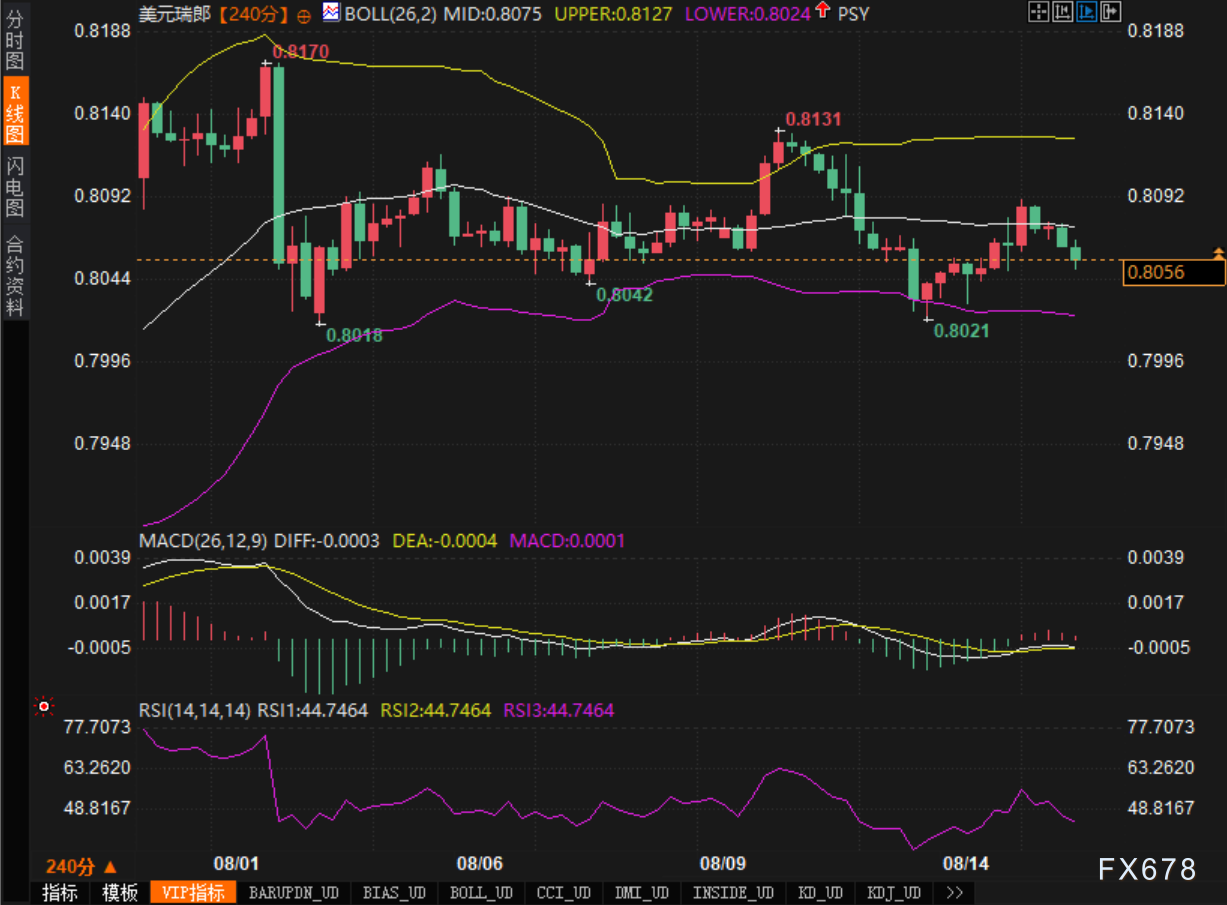 美国经济数据面临反复,近期的PPI数据虽然高于预期,但市场已逐渐接受美联储降息的可能性,美元因此走弱。此外,瑞士的高关税问题仍在限制瑞郎的升值空间,这为美元兑瑞郎汇价提供了支撑。