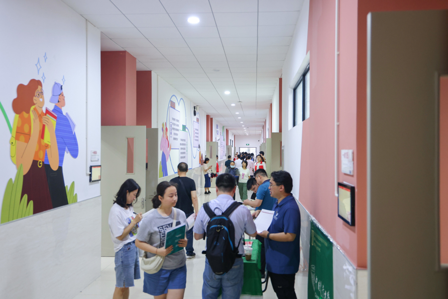6月15日,大雨中,2025年上海市普通高校招生志愿填报现场咨询会在位于临港新片区的上海建桥学院举行,从大操场转入教学楼。当天,上海市及长三角其他地区大批考生和家长如约参与,在不同教室之间“走班”,高度关注名校相关专业的招生新政,以期精准匹配考后志愿填报。